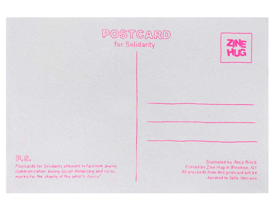 This postcard was created for Zine Hug's Postcards for Solidarity project, attempting to facilitate analog communication during social distancing and raising money for a charity of the artist's choice.