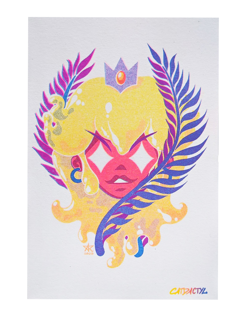 Printed in Cornflower Blue, Yellow, and Fluorescent Pink
