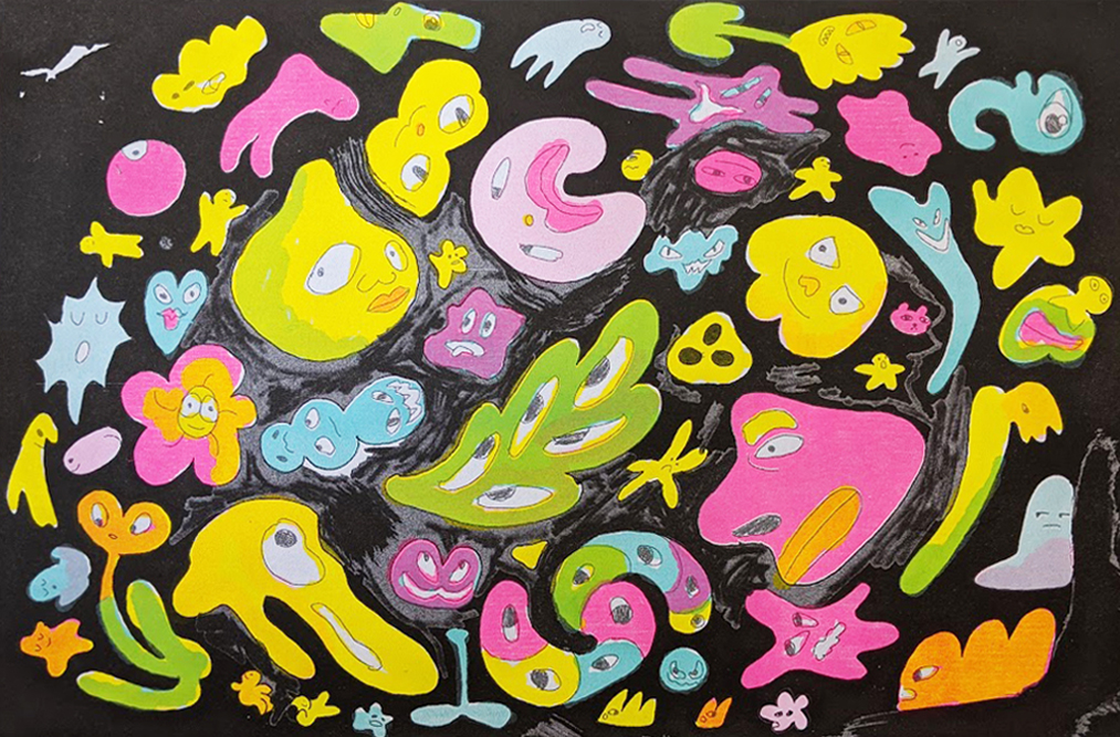 Collaborative drawing and print by Alex Barsky and Amanda Chung made during a riso workshop at PMVABF