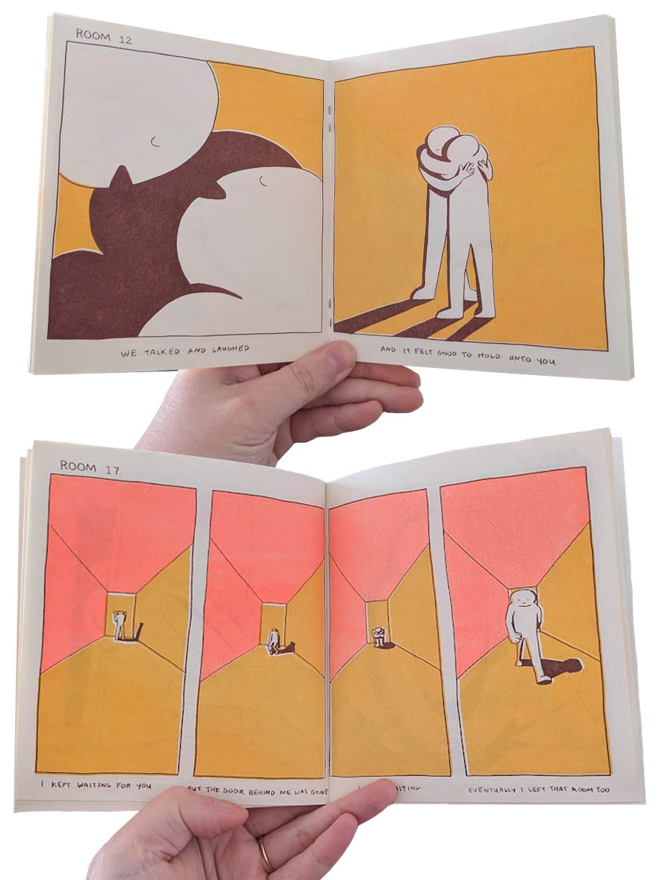 Risographed in Mahogany, Sunflower, and Fluorescent Orange