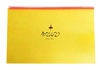Spiral bound with fluorescent orange coil.