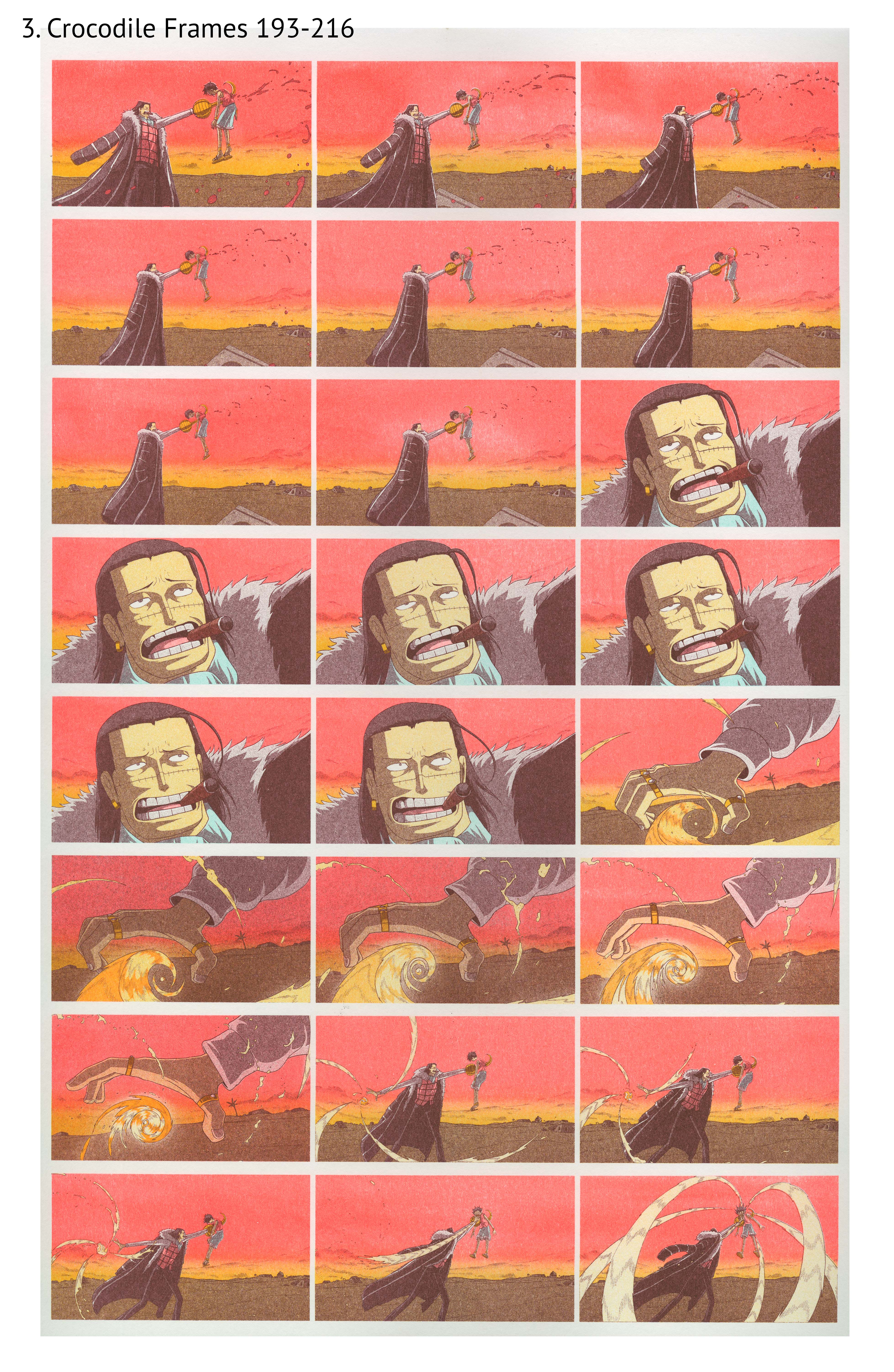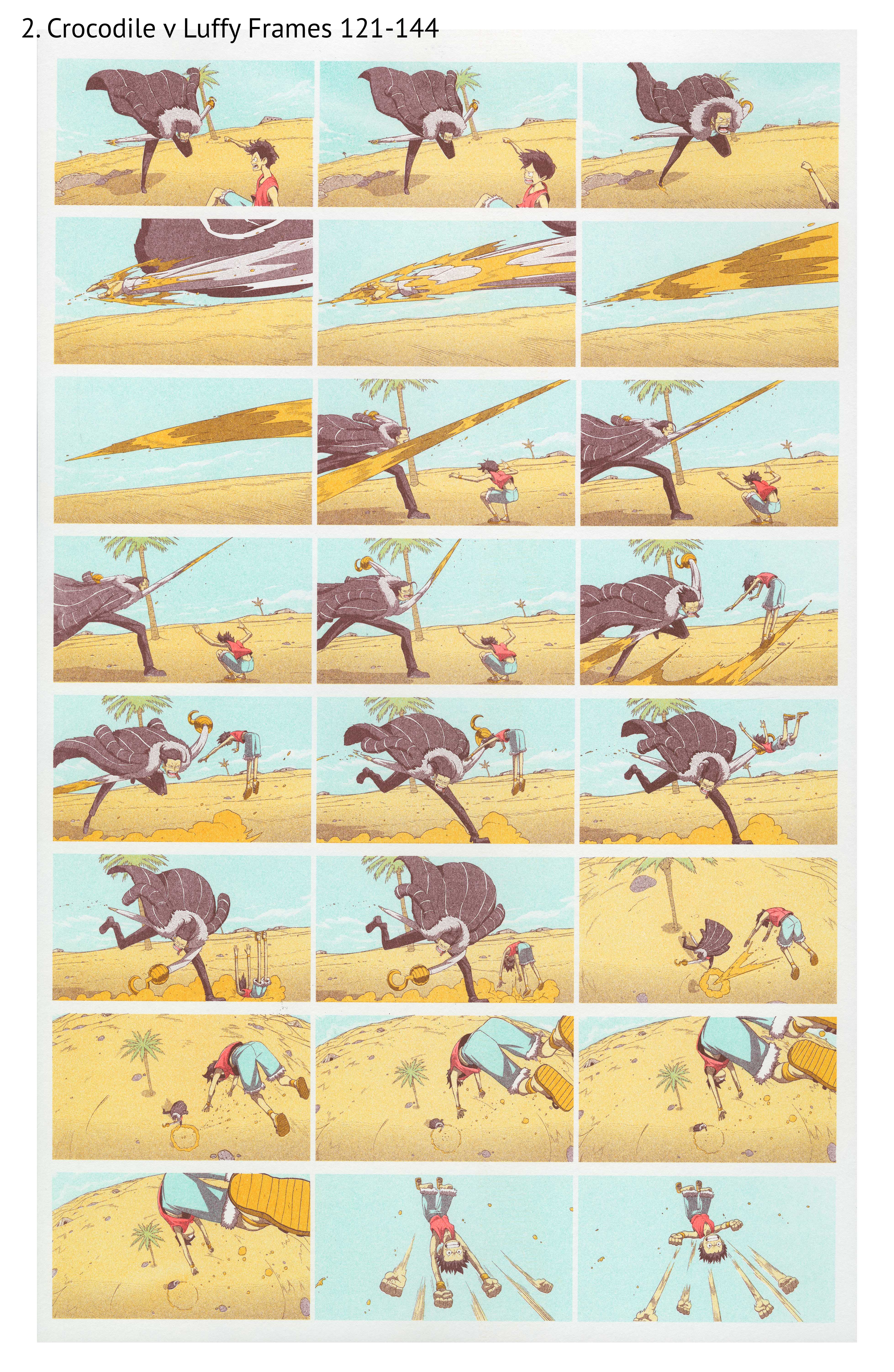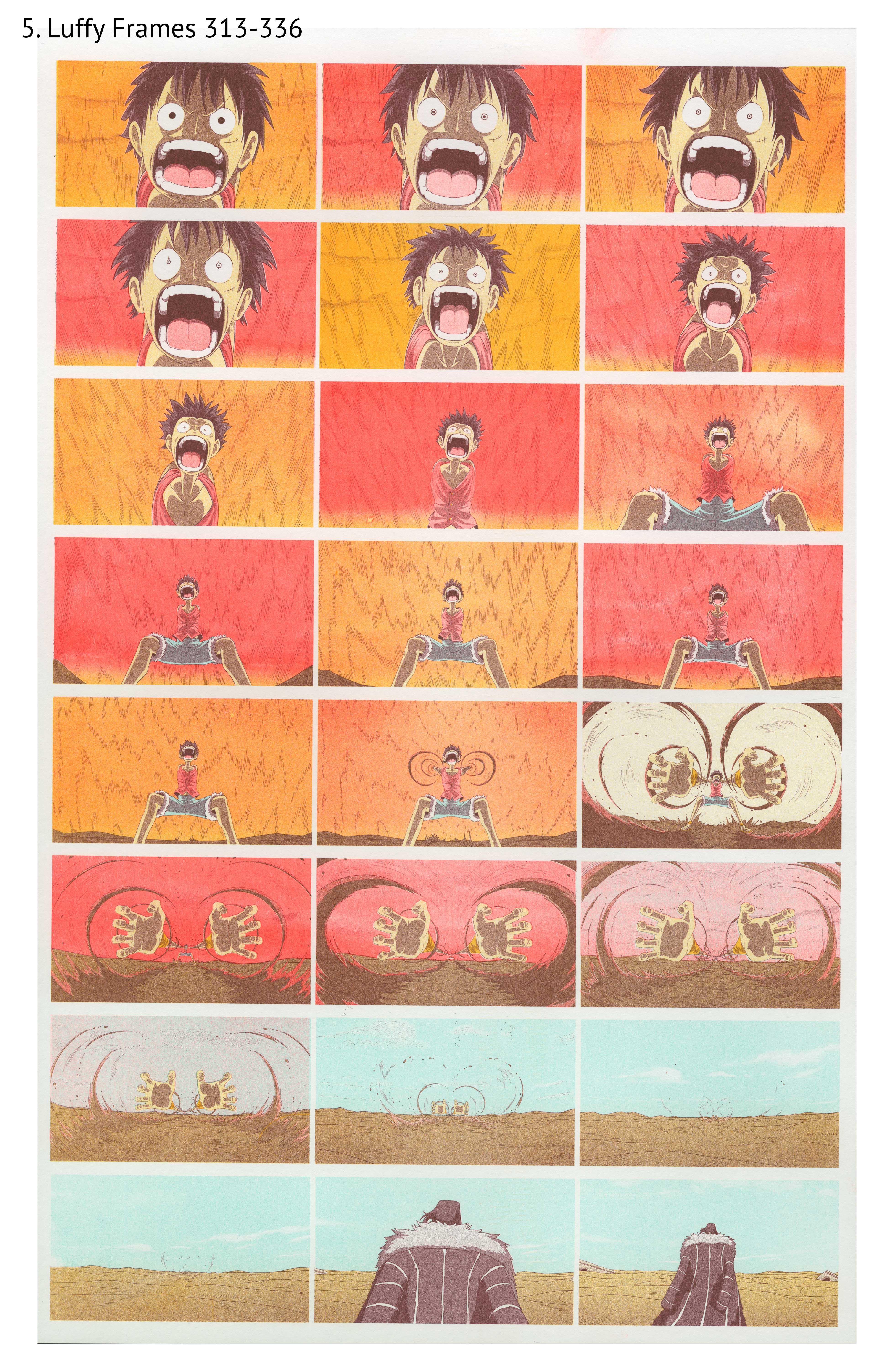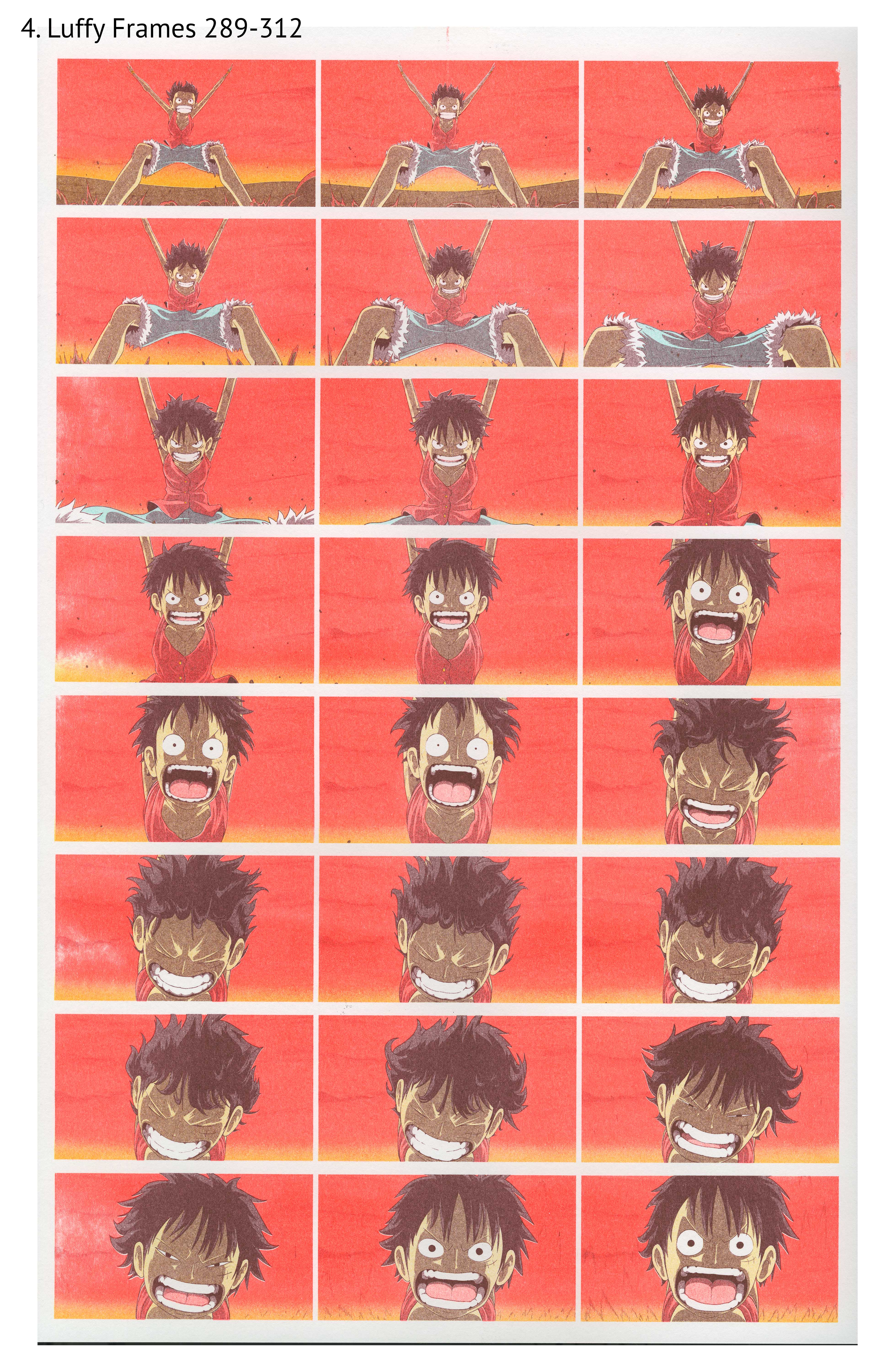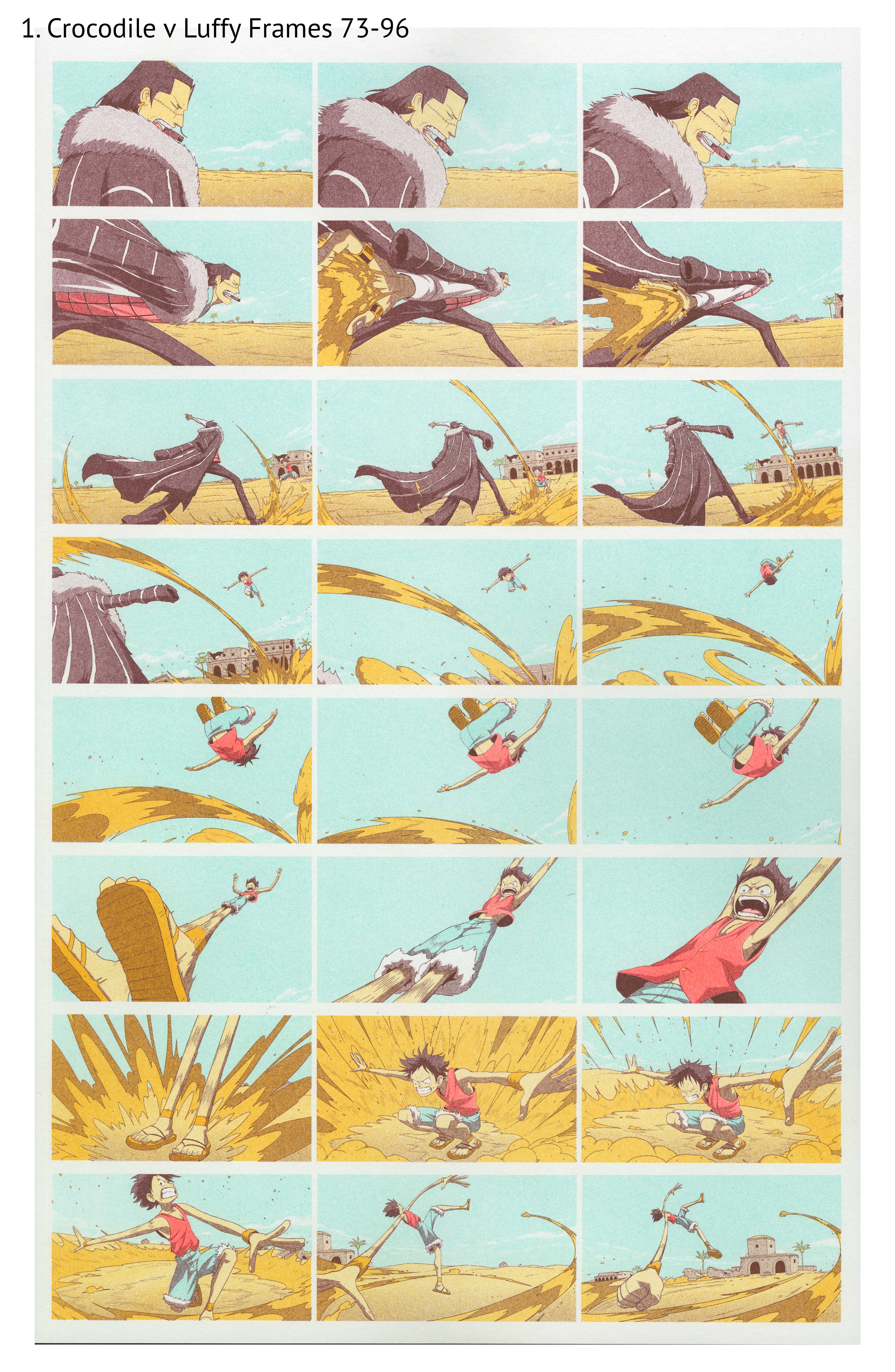 This is one 4-color risograph print containing 24 frames of animation from Zine Hug's One Piece tribute.